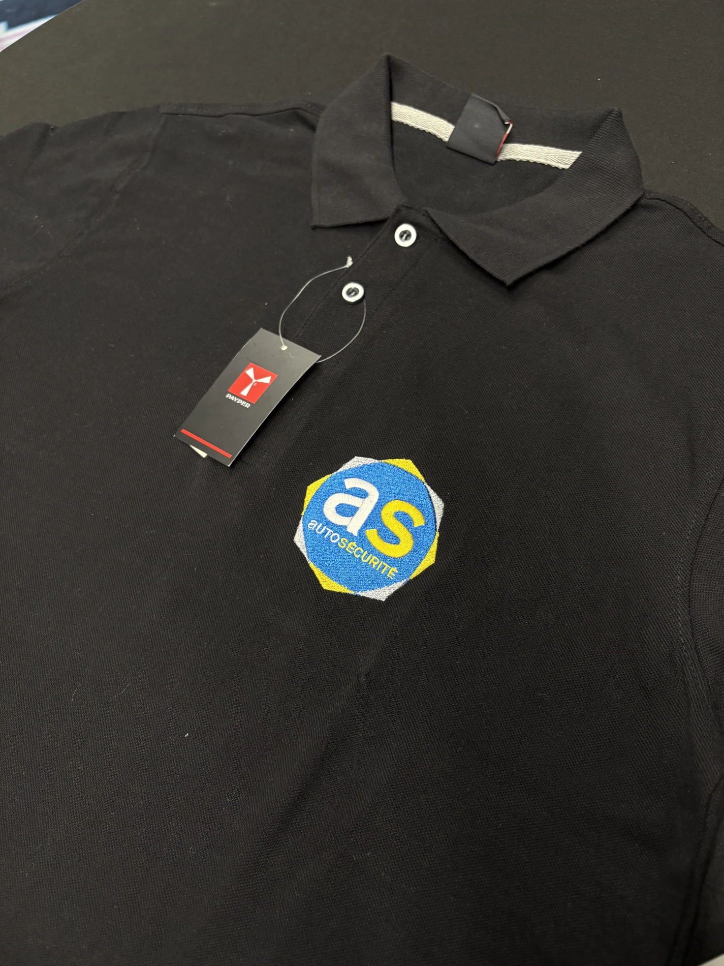 La broderie offre un rendu professionnel, précis et résistant, parfait pour les vêtements de travail ou les tenues d’équipe.